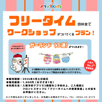 題して【フリータイムの料金でワークショップがついてくる!】