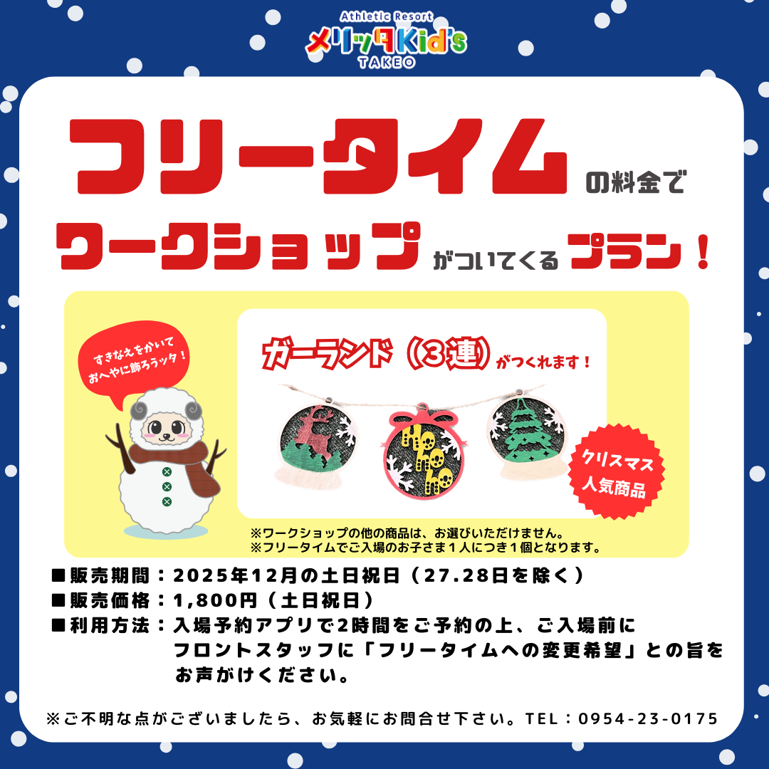 フリータイムの料金でワークショップがついてくる!