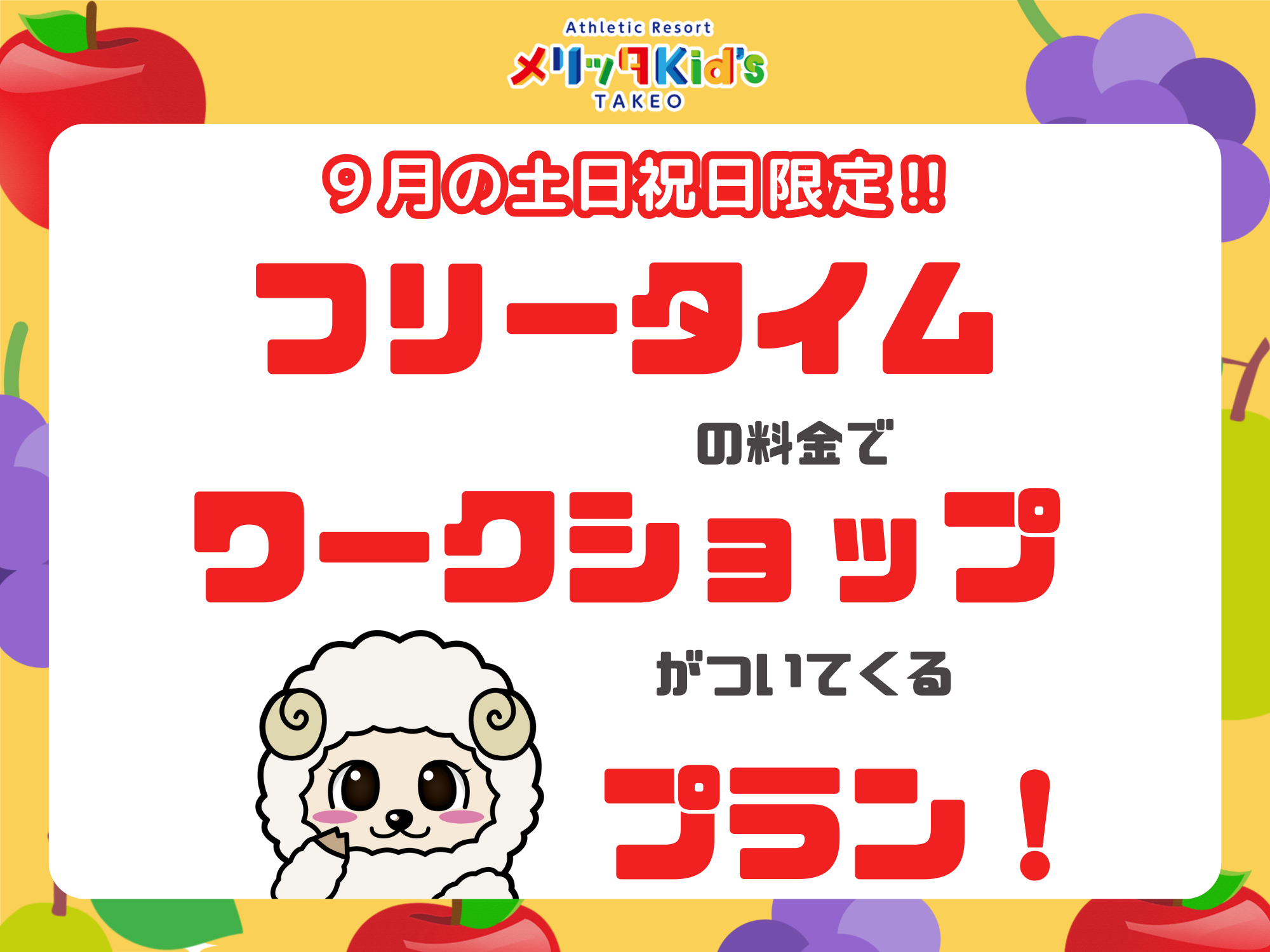 フリータイムの料金でワークショップがついてくる!